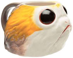 За пару дней до премьеры фильма мне попалась очень медленная кассирша, я сделала пять шагов в сторону стенда и купила себе шлем Дарта Вейдера и бошку Порга. По поводу башки мы с мелким немного попрепирались. Он считал, что это рыба, а я - что млекопитающее, скорее всего котик. У нас примерно такое же дома есть, каждое утро делает глаза по блюдцу и необщее выражение лица "покормииииите сироту". Так вот, представьте мое удивление, когда оказалось, что порг - это вообще ПТИЦА. Мы с дитем в полном офиге, что никто не угадал.